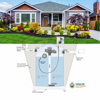 Cisterna produzida em polietileno que proporciona grande durabilidade, Kit para água da chuva é um sistema completo com todos os acessórios necessários para captar a água que vem do telhado.