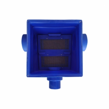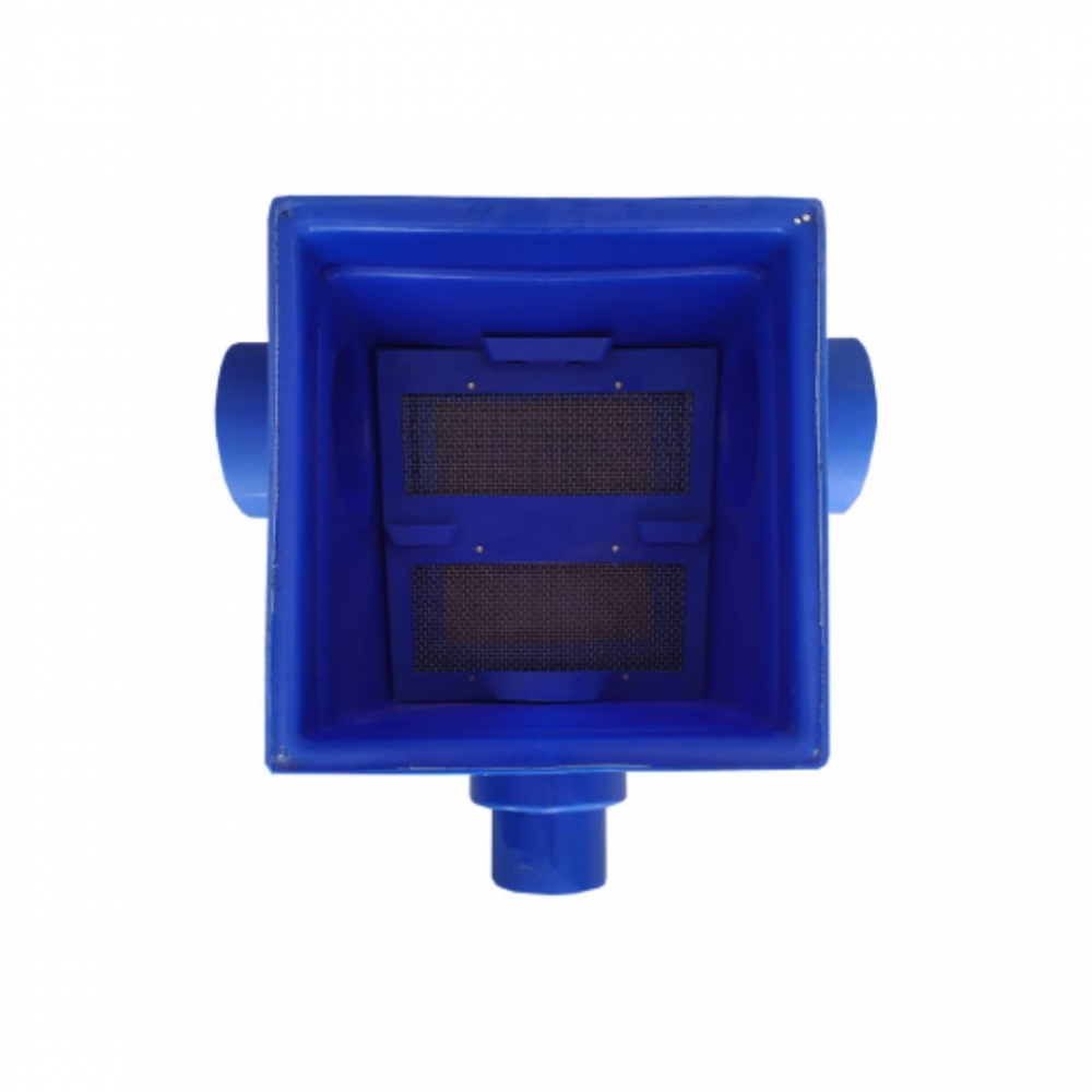 Câmara e tampa em polietileno, parafusos de aço inoxidável, elemento filtrante duplo com malha fina em aço inox 304. Materiais 100% recicláveis.
